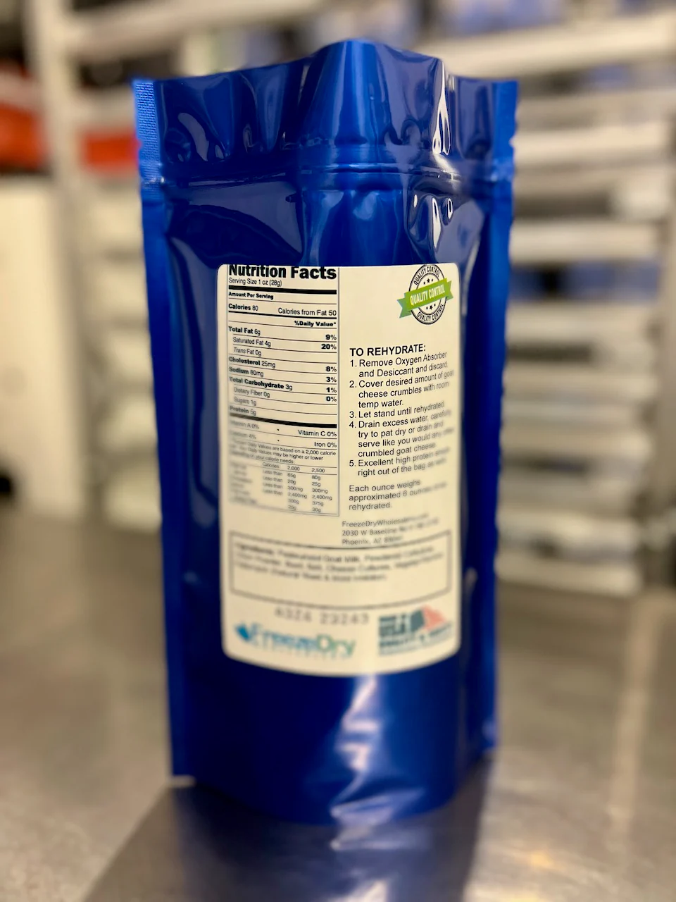 With this product you will be purchasing one bulk package of freshly prepared local freeze dried all natural crumbled goat cheese with a net weight of 15.1 ounces, packaged for long term storage.