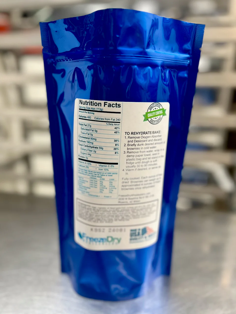 This package of cheesecake brownies has already been mixed from scratch and baked for you prior to being freeze dried, so it is perfect to take on a hike or a camping trip without the hassle, mess and waste of having to lug a cooler around with a lot of ice to try and keep your brownies fresh. Weāve even done all work baking this for you! You get zero waste, unlike preparing your own brownies if the power is out!