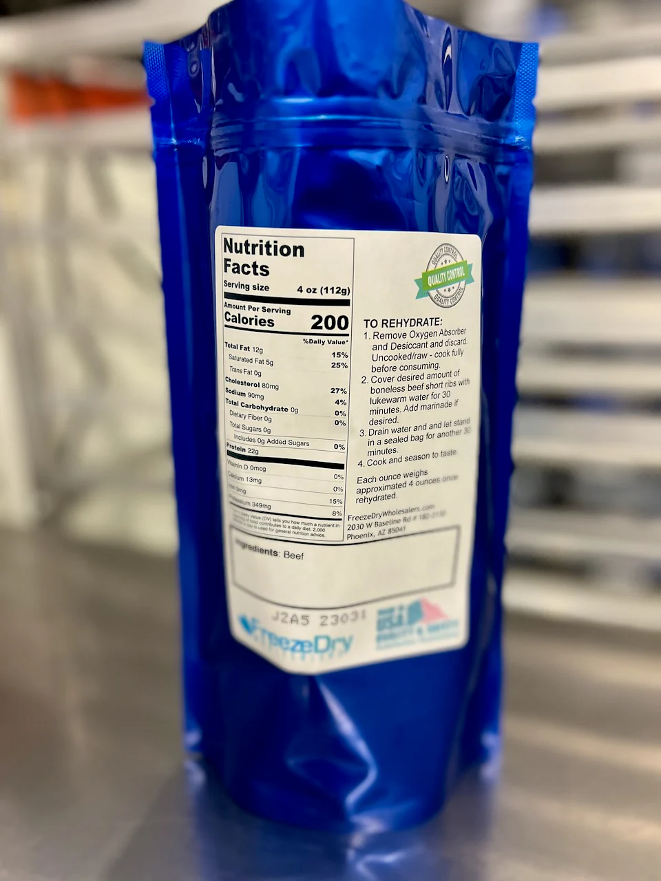 With this purchase you will be pre-ordering one bulk package of freshly freeze dried USDA prime uncooked beef beef short ribs with a net weight of 10.25 ounces, packaged for long term storage.